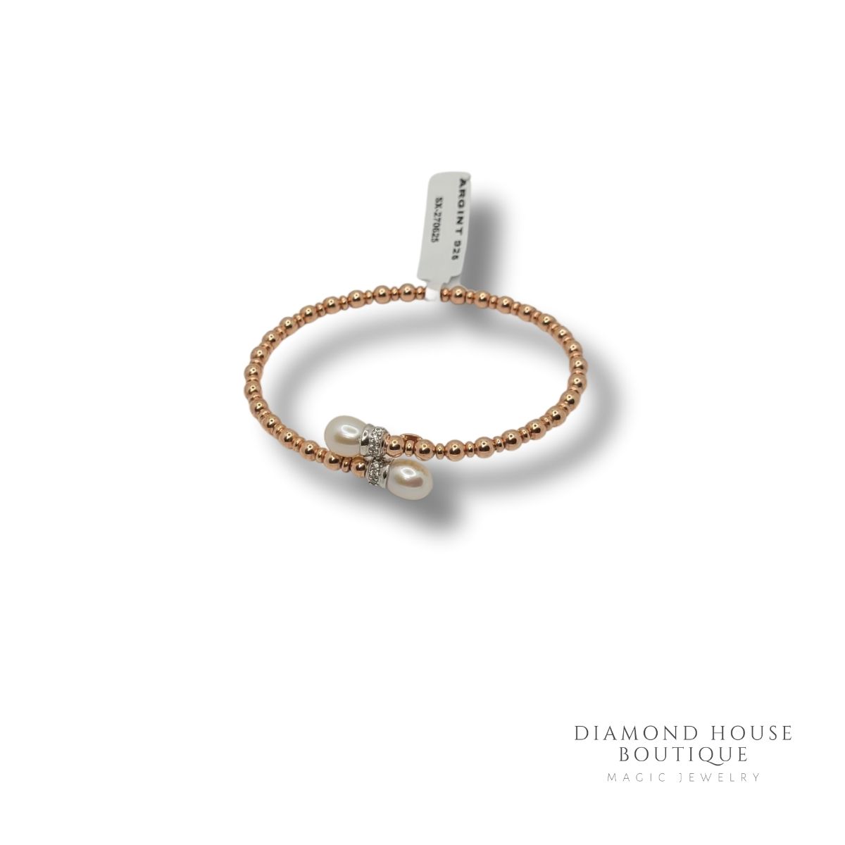 Bratara argint 925 placata cu aur rose,14k si perle.Aceata este usor flexibila.