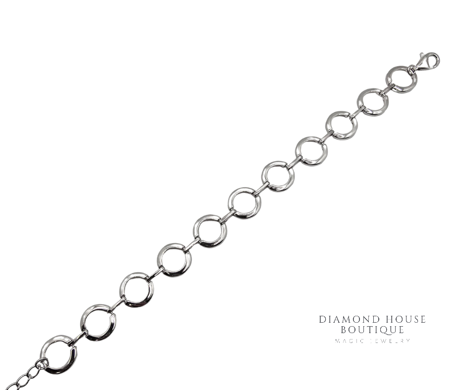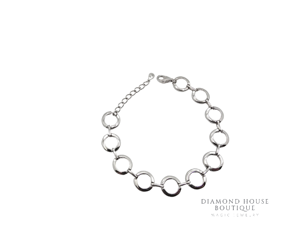 Bratara argint 925,rodiata formata din 11 cerculete mici.Diametrul unui cerc este de 1.00 cm.
