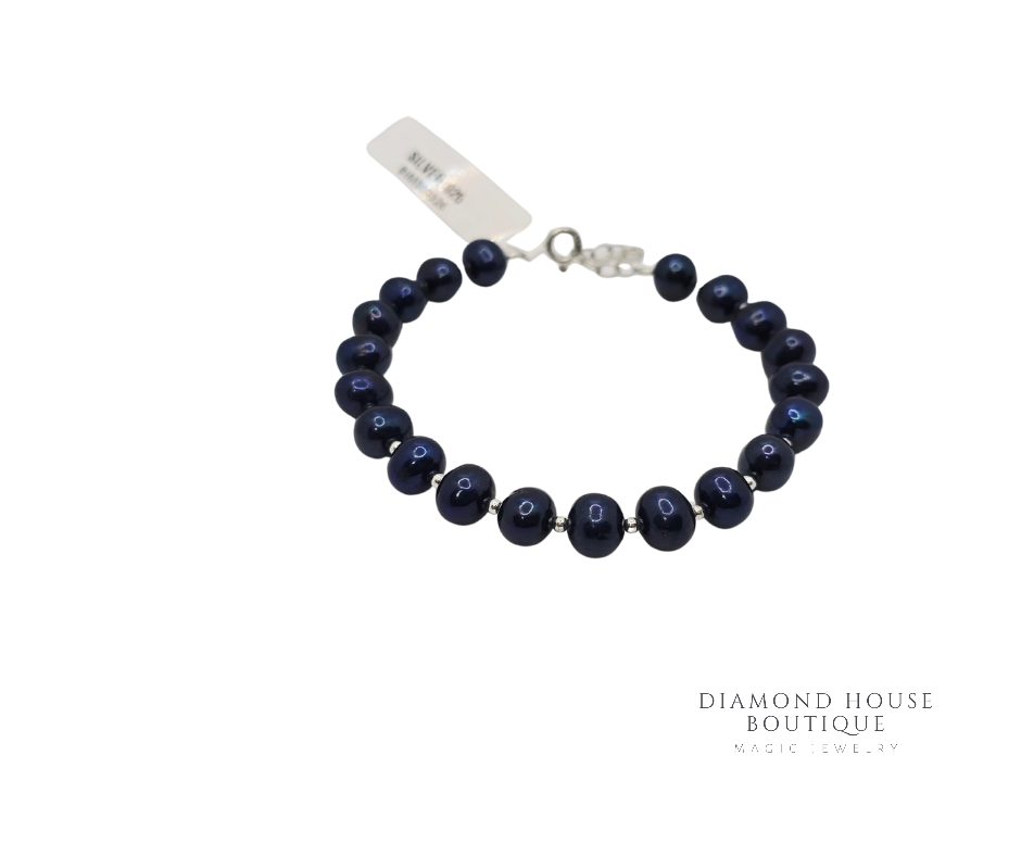 Brățară din argint cu perle Tahiti, evidențiată prin nuanțele profunde și luciul sofisticat al perlelor negre.