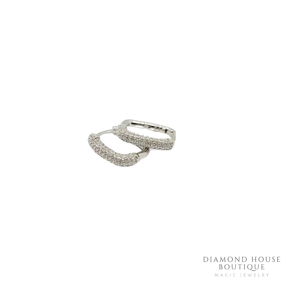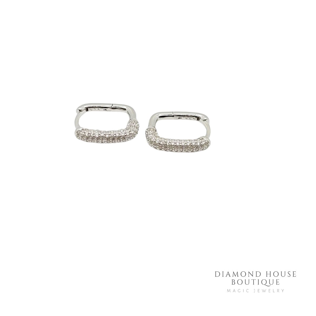 Cercei argint 925,rodiati avand un aspect geometric precis si fin.Montura fina a pietrelor dau o nota de eleganta cerceiilor.