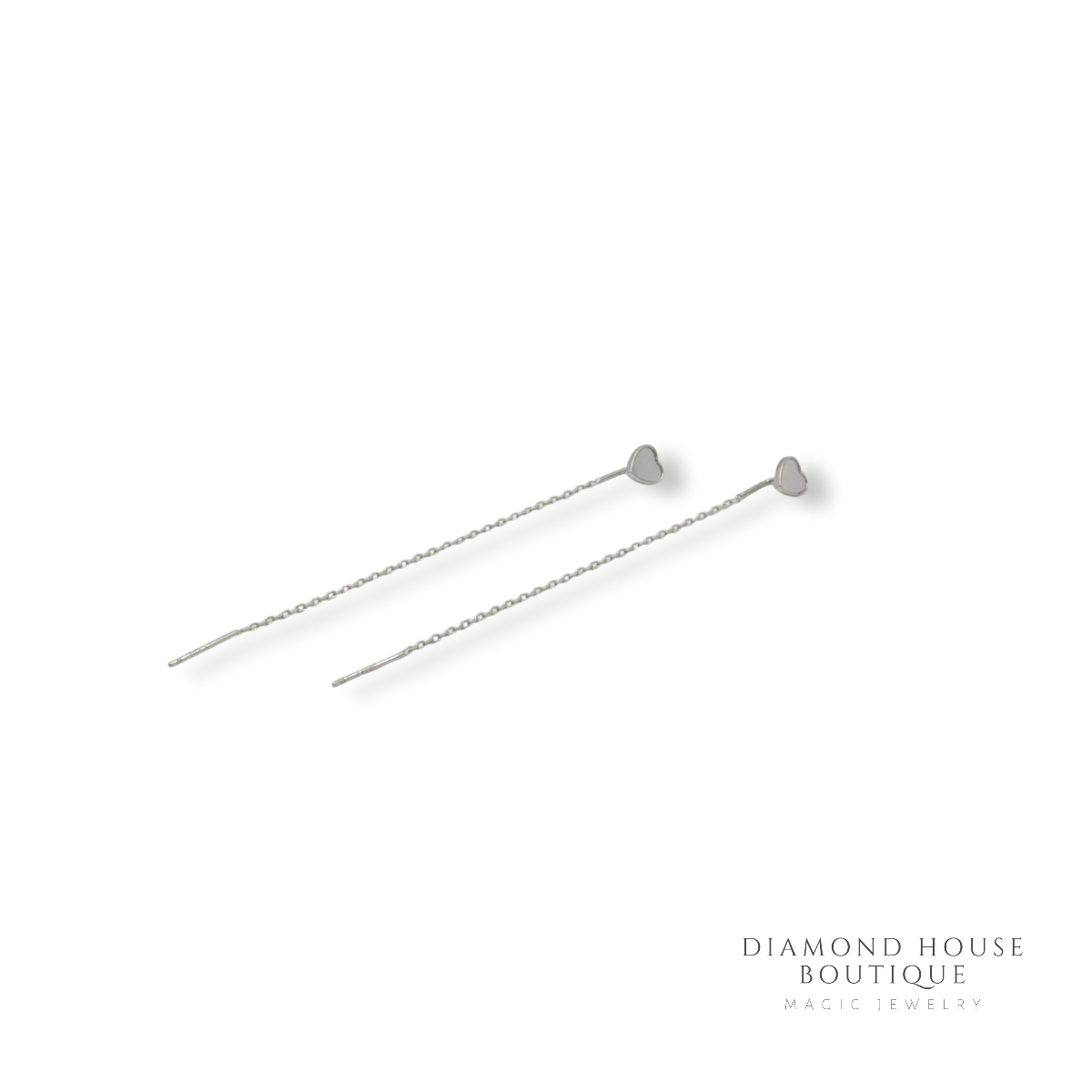 Cercei argint 925,ce se trag prin ureche ,cu un lantisor subtire,In partea de sus au o inima,formata din scoica.