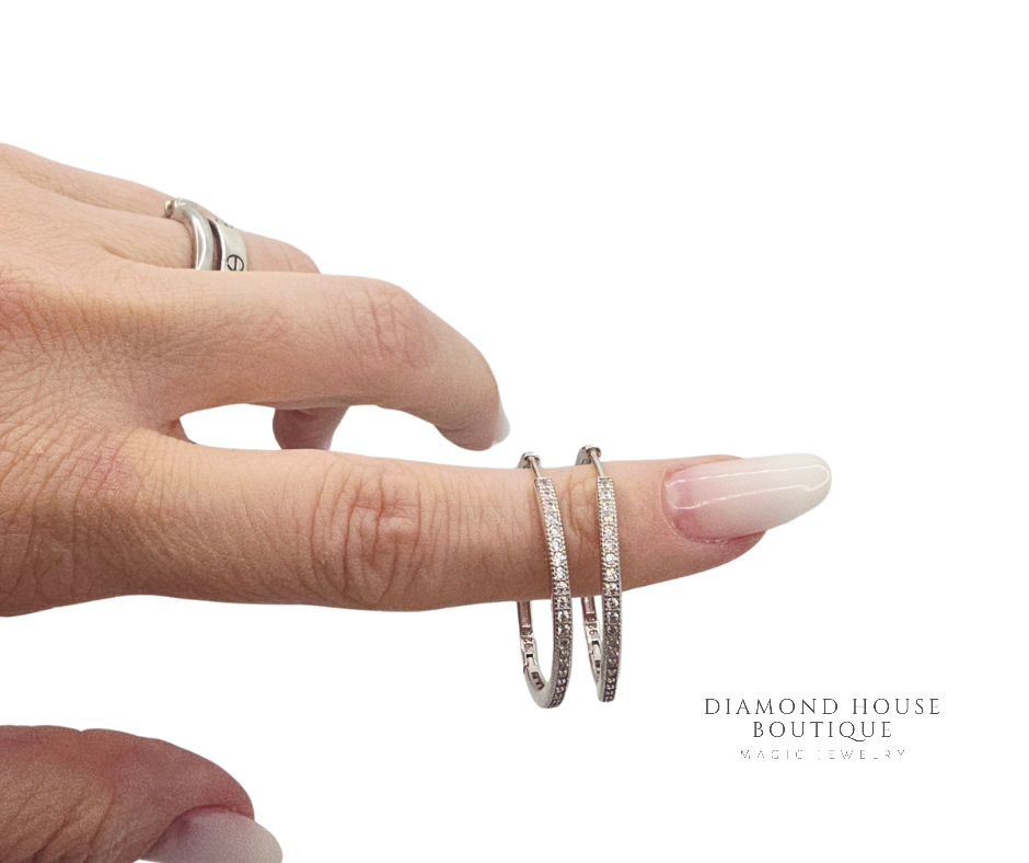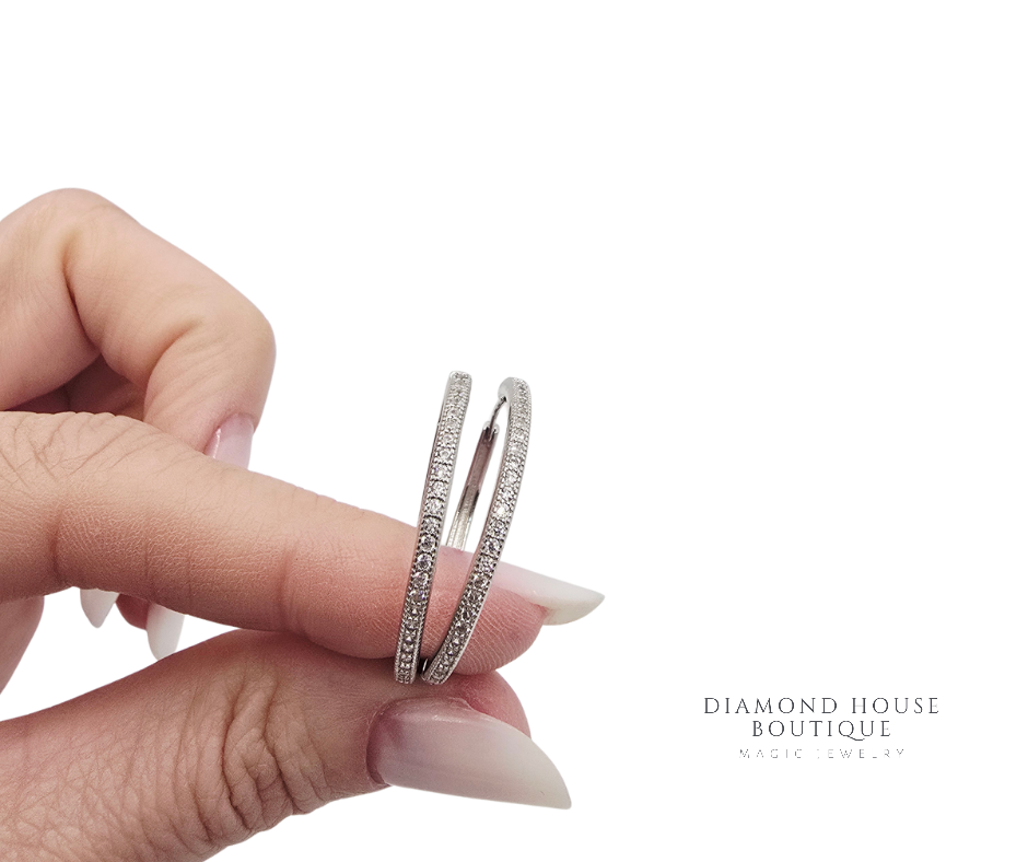 Cercei argint 925,rodiati.Acestia jumatate sunt cu pietricele albe de zirconiu.