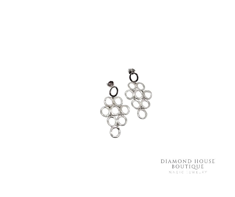 Cercei din argint cu design modern, formați din cercuri fine interconectate, ce oferă un look elegant și aerisit.