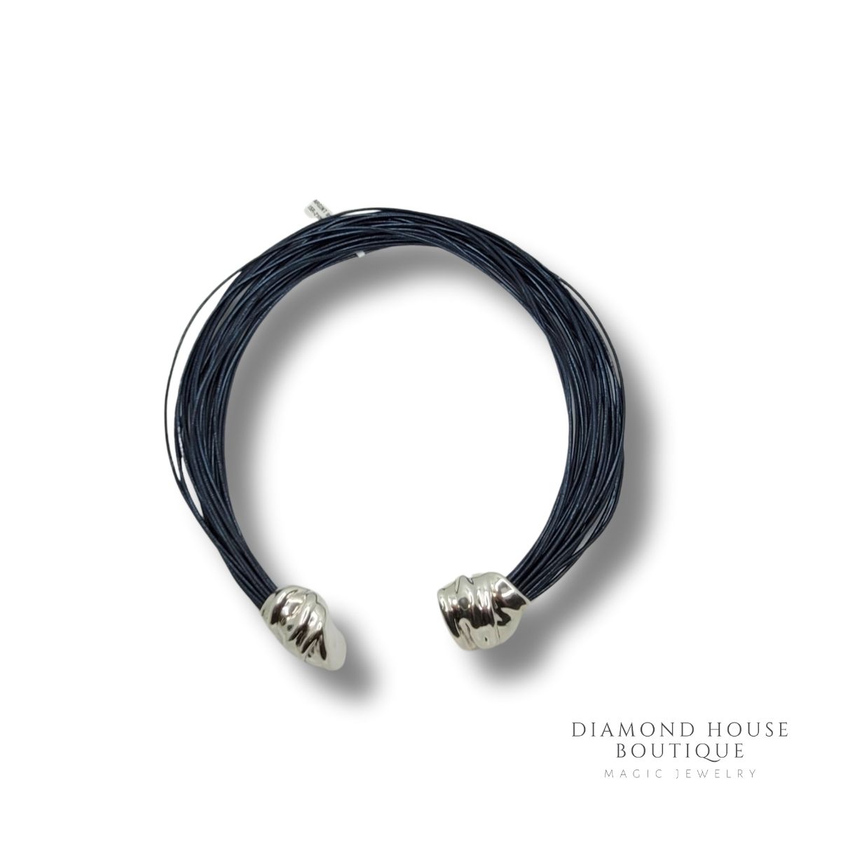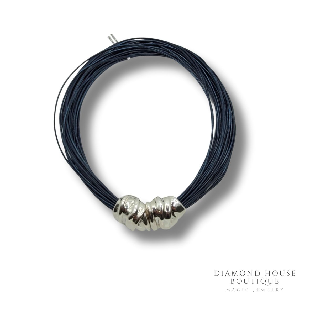 Colier argint 925,din piele culoare blue navy.Acest colier are un design unic.inchiderea este una magnetica.Face parte dintr-un brand exclusivist.Realizare lui s-a facut prin electroforming.