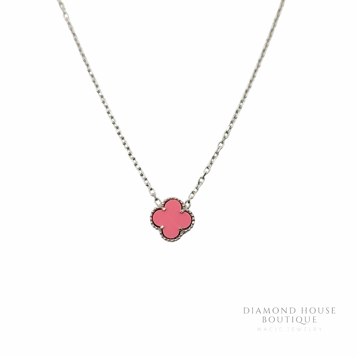 Lungime colierului:40 cm+5 cm prelungirea.Culoarea florii este un roz frumos.