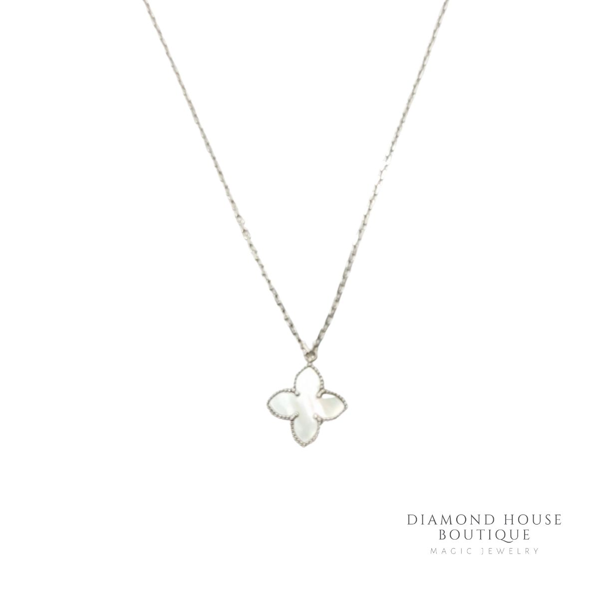 Colier argint 925,rodiat cu apect de aur alb.Acesta are atasat un pandantiv frumos din scoica,design floare.
