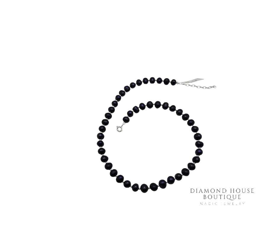 Colier din argint cu perle Tahiti, evidențiat prin luciul profund și nuanțele elegante ale perlelor negre.