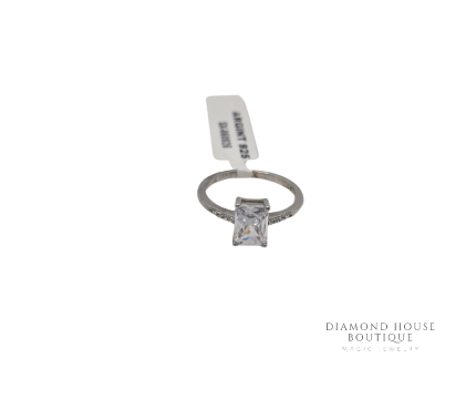 Inel argint 925,rodiat semideschis.Acesta contine pietricele colorate de zirconiu .in In interiorul rombului se poate observa discret petalele unei flori!