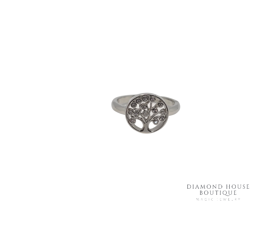 Inel din argint cu simbolul Copacului Vieții, decorat cu mici cristale ce adaugă un plus de strălucire și eleganță.