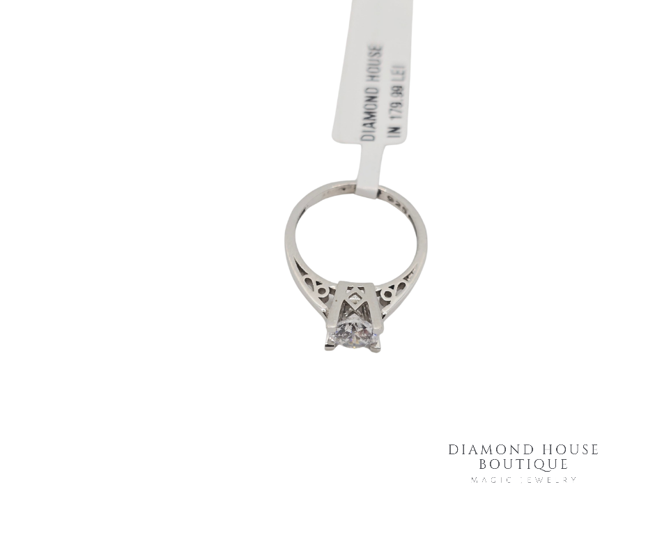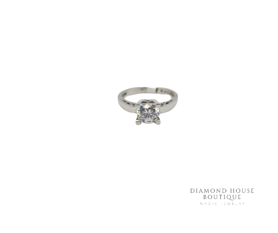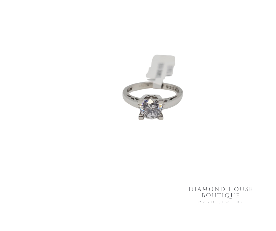 Inel din argint rodiat cu design clasic de tip solitar, pus în valoare de o piatră centrală din zirconiu alb cu strălucire intensă.